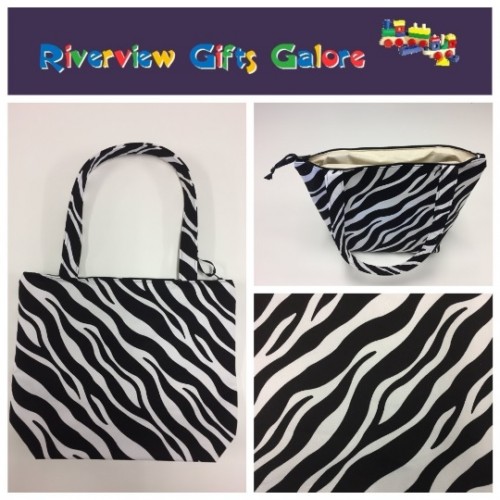 Medium Tote Bag with Zip- Zebra Print