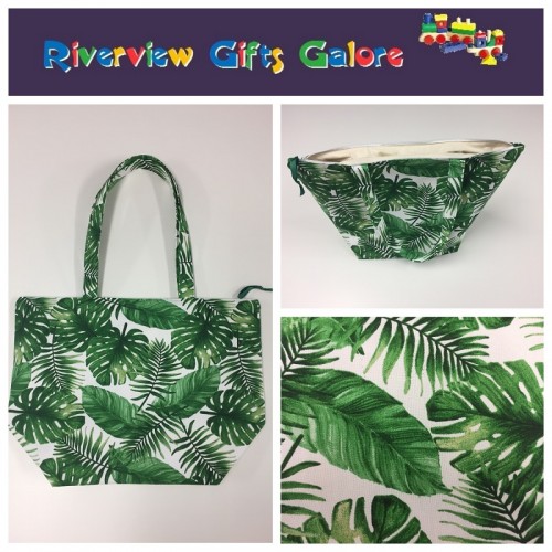 Large Tote Bag With Zip - Forest Leaf
