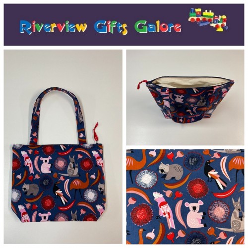 Medium Tote Bag with Zip - Australian Animals on Navy