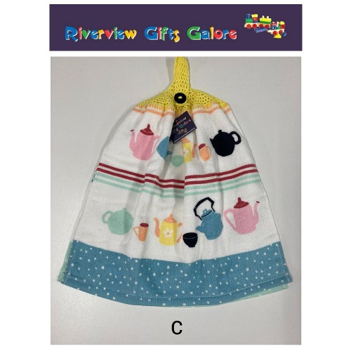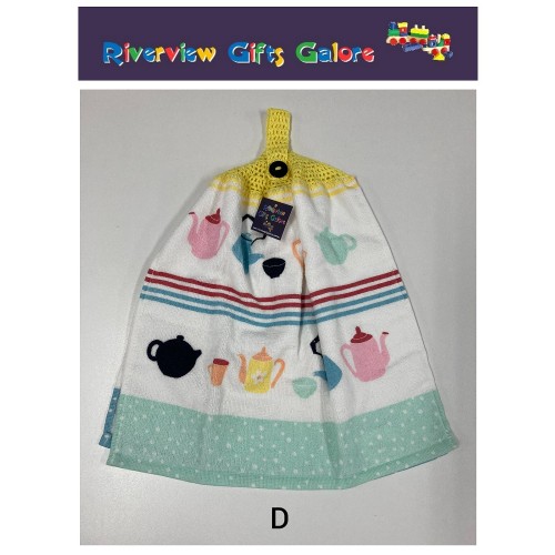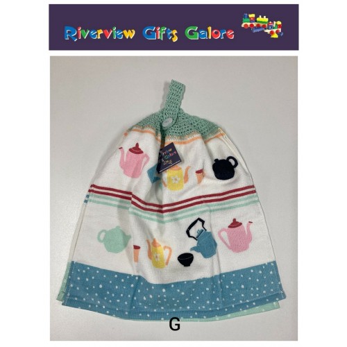 Crochet Top Hand Towel / Tea Towel - Teapots