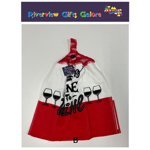 Crochet Top Hand Towel / Tea Towel - Working from Nine to Wine