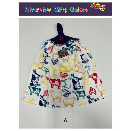 Crochet Top Hand Towel / Tea Towel - Farm Animals