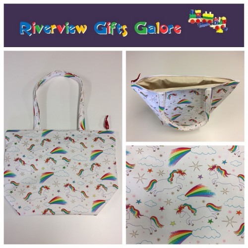 Large Tote Bag With Zip - Unicorns & Rainbows