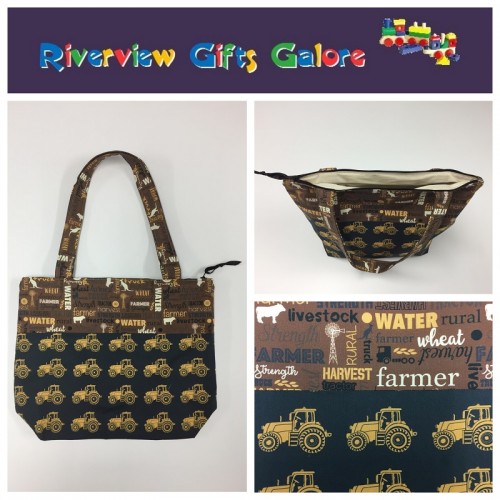 Medium Tote Bag with Zip- Farmers Fighting Spirit - Words and Tractors