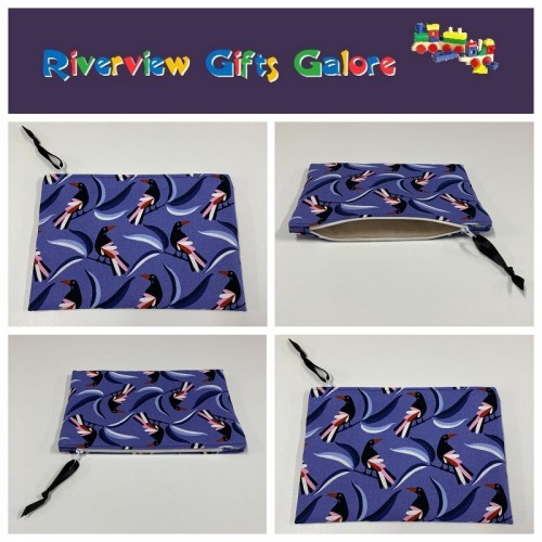 Fully lined zip clutch / purse/ bag / pouch. Quality cotton fabric outer and calico inner and stiffened slightly with interfacing. Dress zip with ribbon tag to make opening and closing easy. Machine Washable.