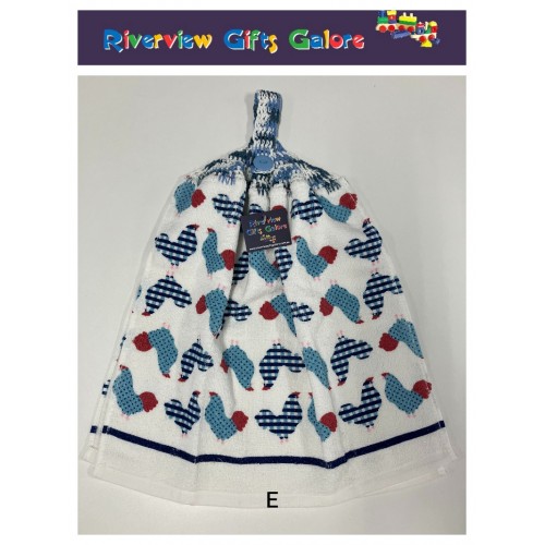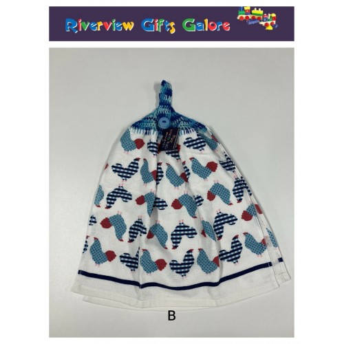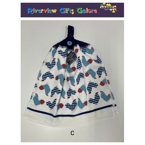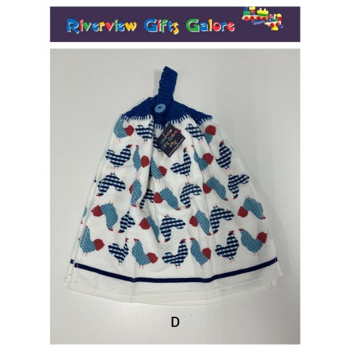 Crochet Top Hand Towel / Tea Towel - Blue Roosters