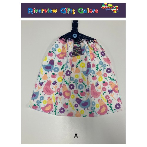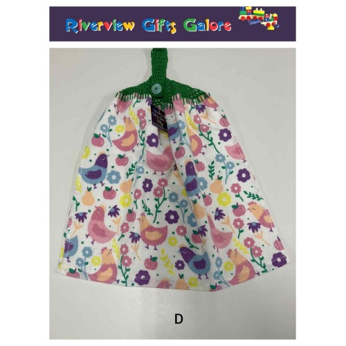 Crochet Top Hand Towel / Tea Towel - Chickens and Gardens