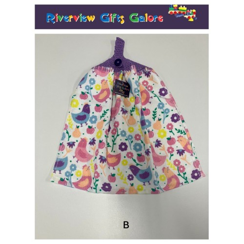 Double thickness hand towel / tea towel with handy crochet top so it can be easily hung on a door handle or rail.