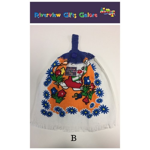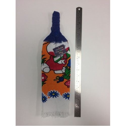 Double thickness hand towel / tea towel with handy crochet top so it can be easily hung on a door handle or rail.