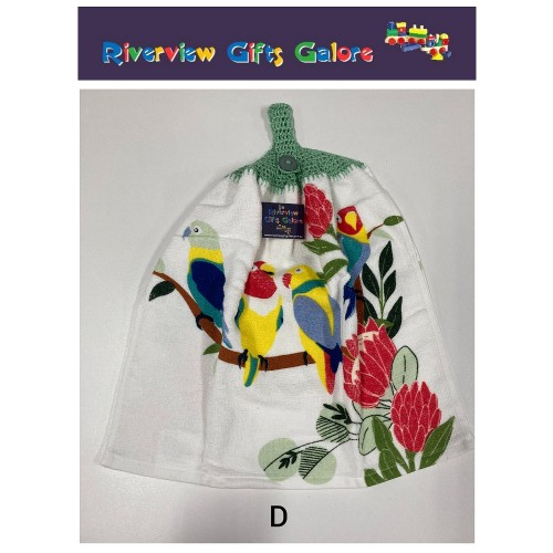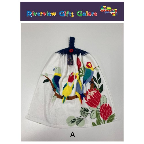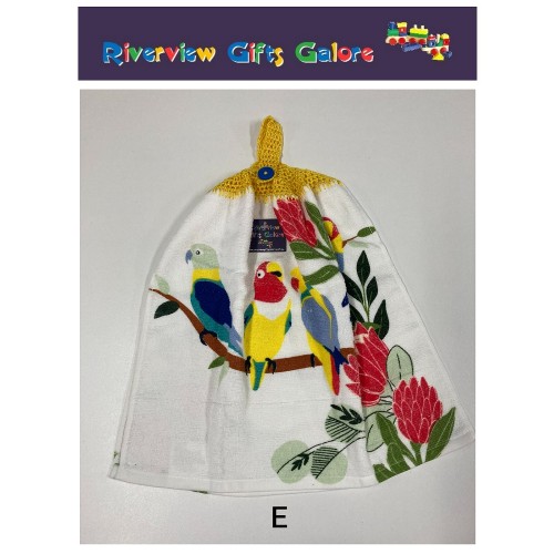 Crochet Top Hand Towel / Tea Towel - Parrots
