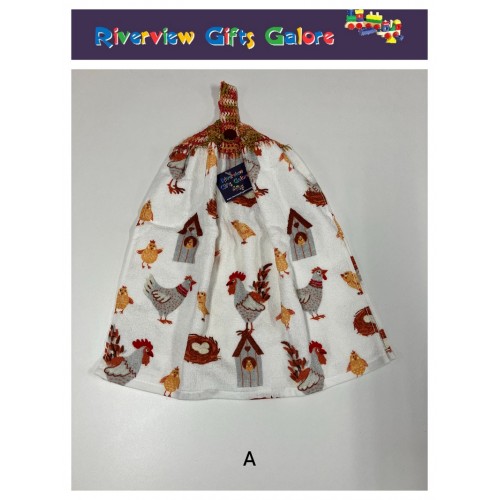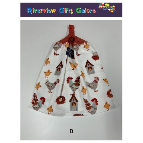 Crochet Top Hand Towel / Tea Towel - Roosters