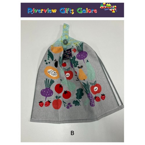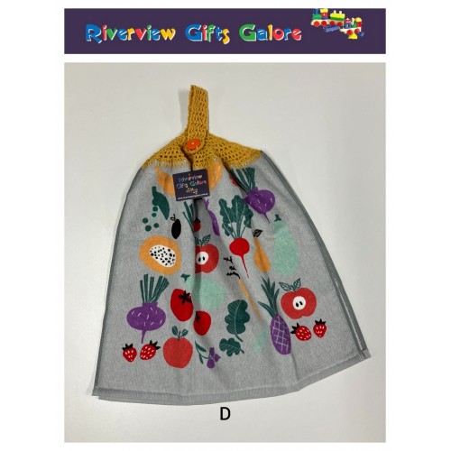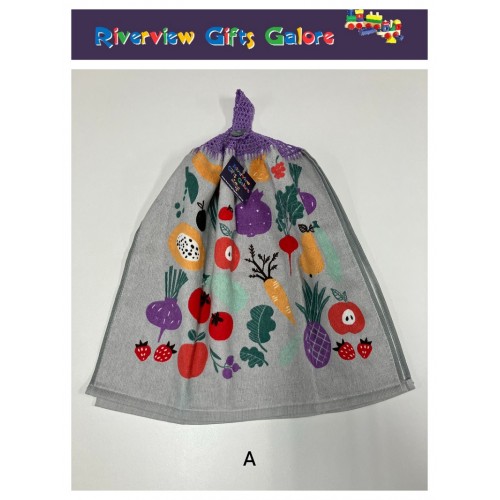 Crochet Top Hand Towel / Tea Towel - Fruit & Vegies