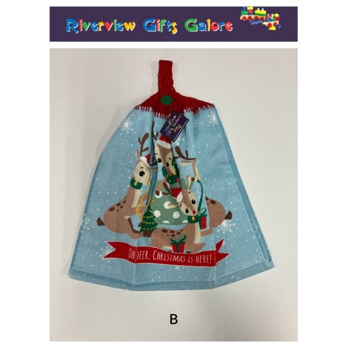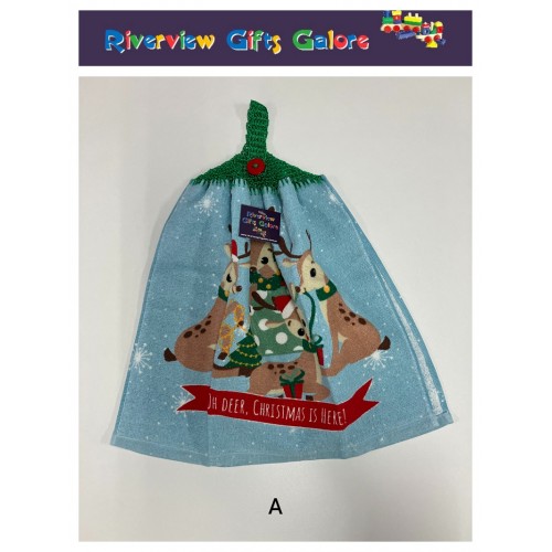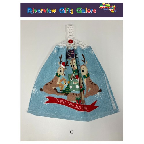 Crochet Top Hand Towel / Tea Towel - Oh Deer, Christmas Is Here