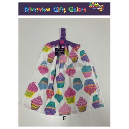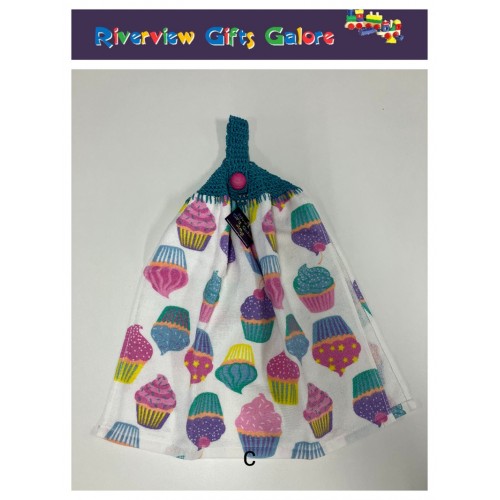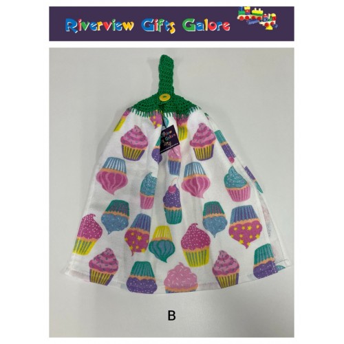 Crochet Top Hand Towel / Tea Towel - Cupcakes