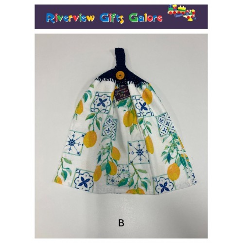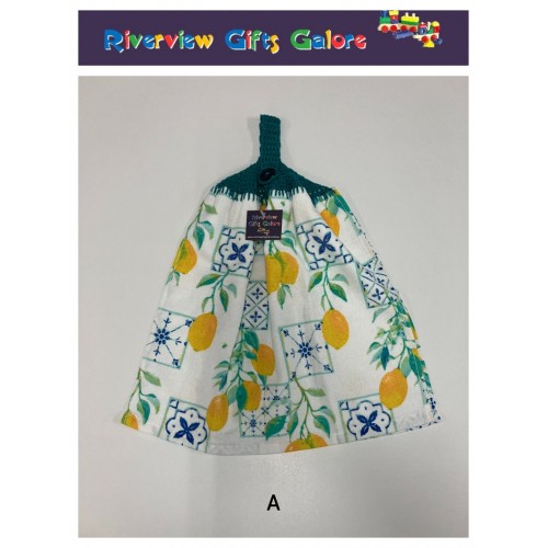 Double thickness hand towel / tea towel with handy crochet top so it can be easily hung on a door handle or rail.