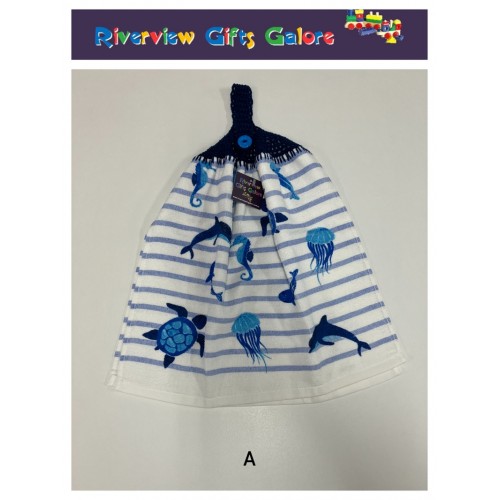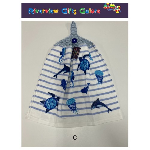 Crochet Top Hand Towel / Tea Towel - Sealife
