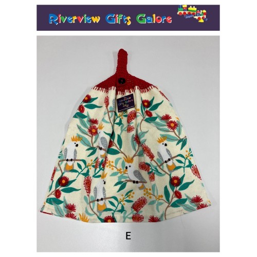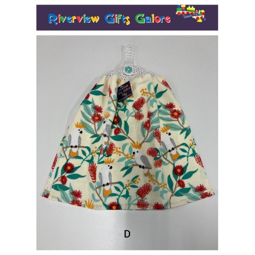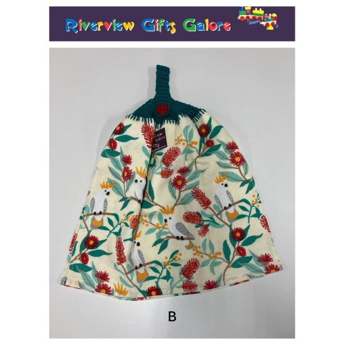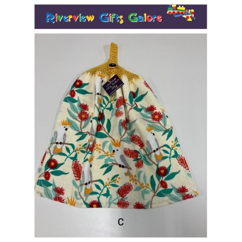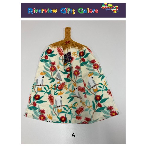 Crochet Top Hand Towel / Tea Towel - Yellow Crested Cockatoo & Wattle
