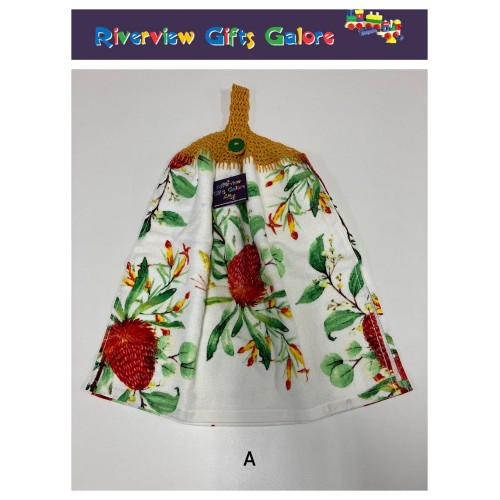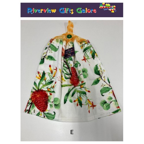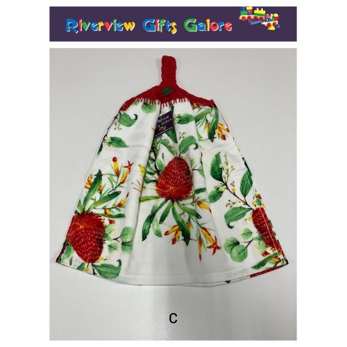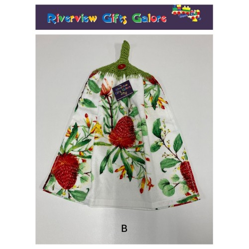 Crochet Top Hand Towel / Tea Towel - Waratah