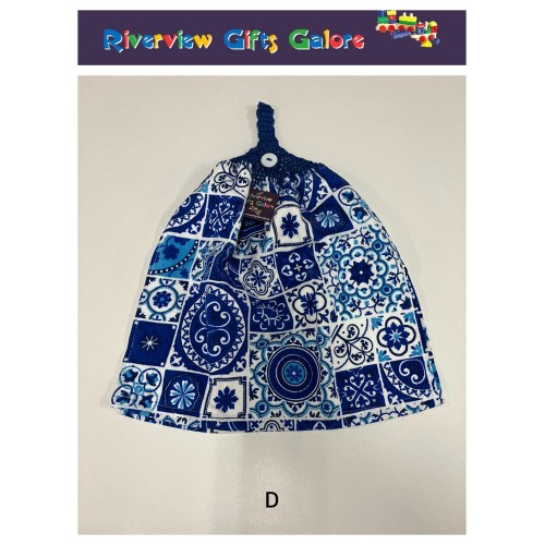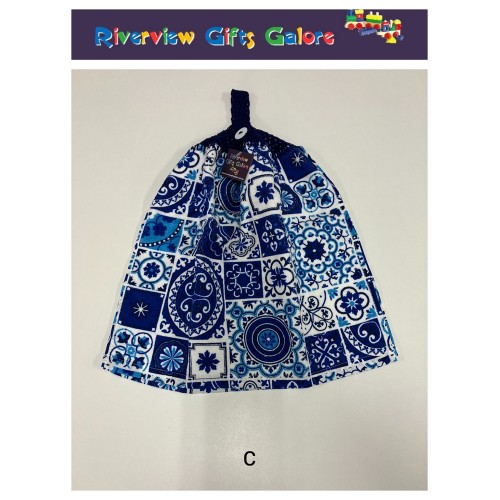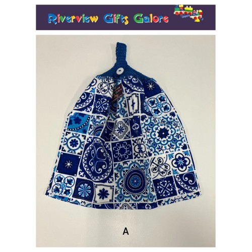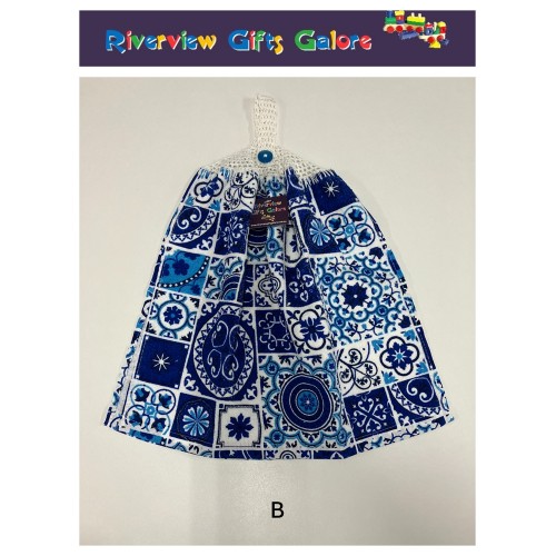 Crochet Top Hand Towel / Tea Towel - Blue Mosaic