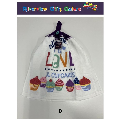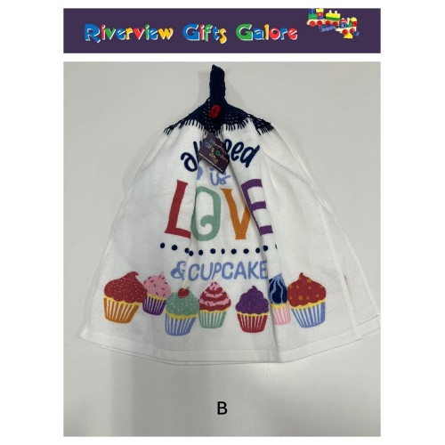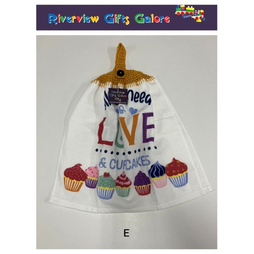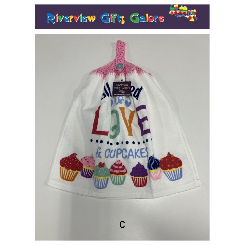 Crochet Top Hand Towel / Tea Towel - All You Need is Love & Cupcakes