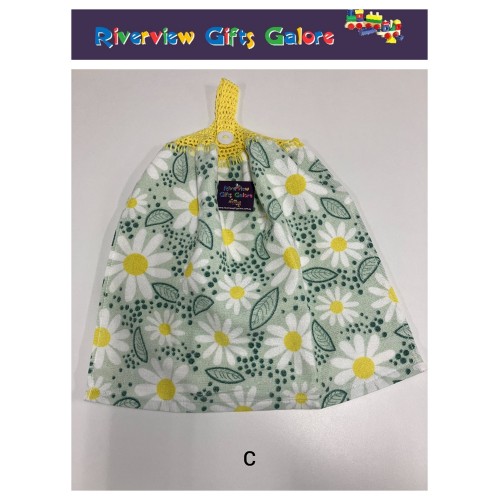 Double thickness hand towel / tea towel with handy crochet top so it can be easily hung on a door handle or rail.