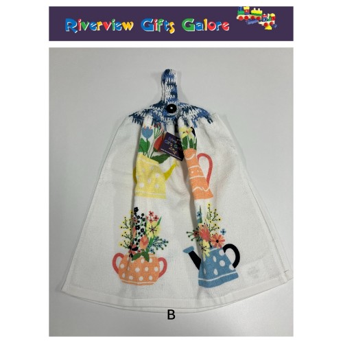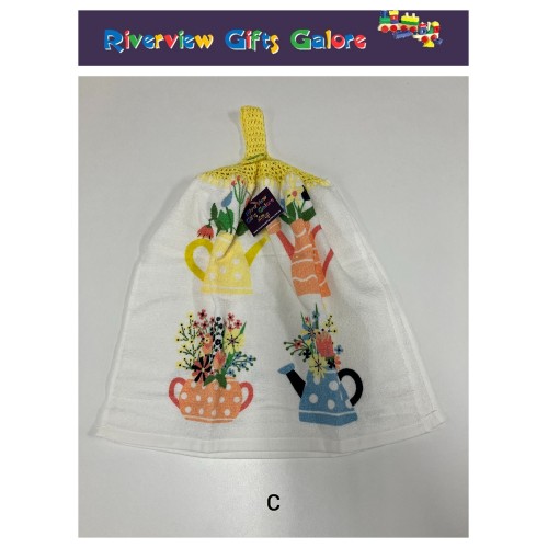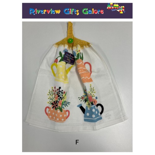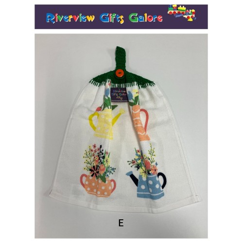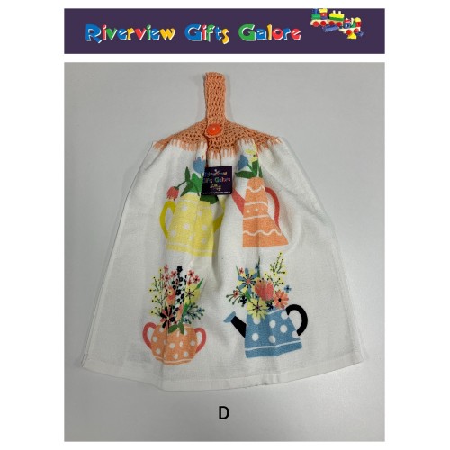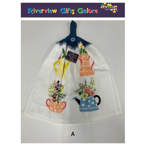 Crochet Top Hand Towel / Tea Towel - Watering Cans - Large