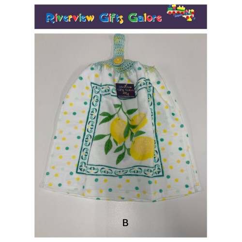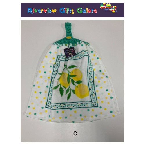 Crochet Top Hand Towel / Tea Towel - Lemons and Green Mosaics
