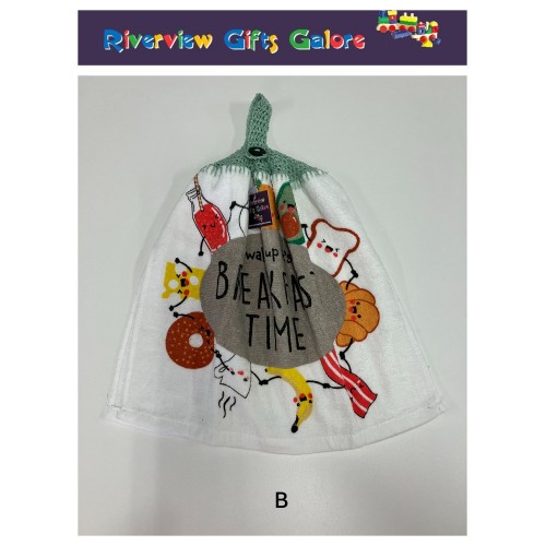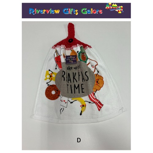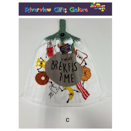 Crochet Top Hand Towel / Tea Towel - Wake Up It's Breakfast Time