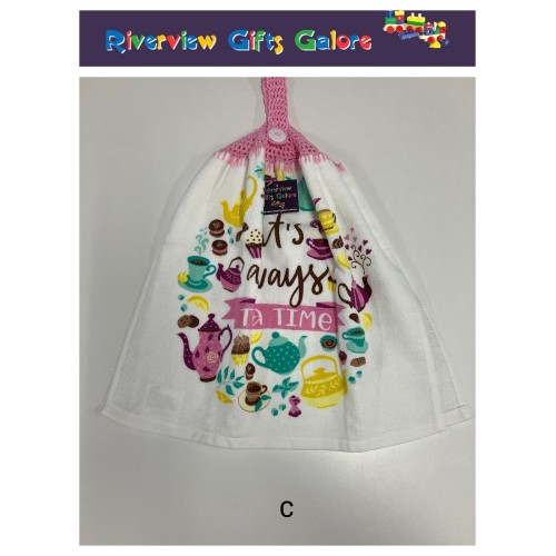 Crochet Top Hand Towel / Tea Towel - It's Always Tea Time