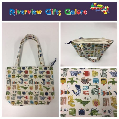 Medium Tote Bag with Zip- Dinosaurs Cream