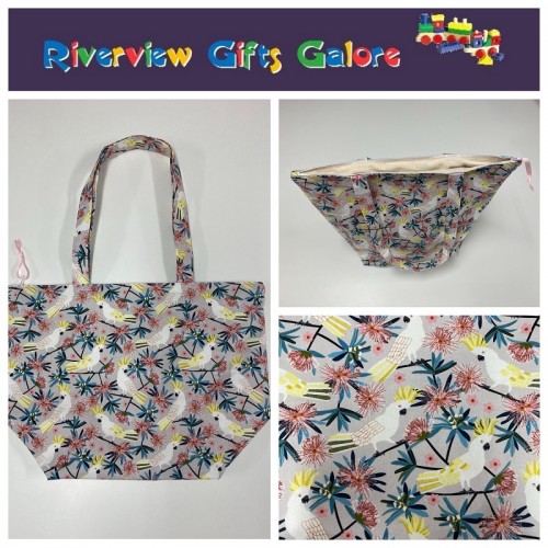 Large Tote Bag With Zip - White Cockatoo