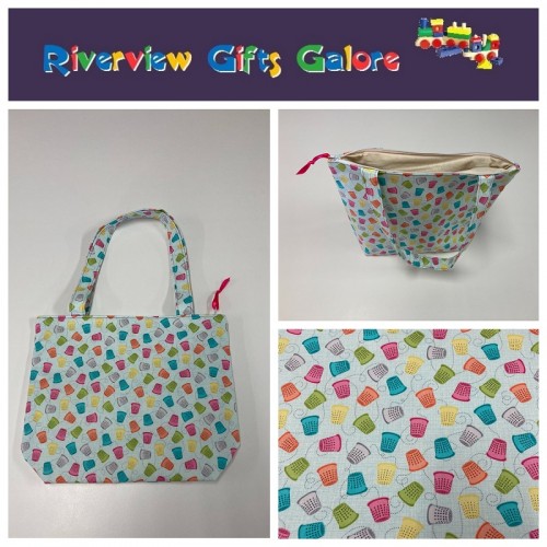 This bag is fully lined with a 35cm zip. Made with quality cotton fabric outer and calico inner and stiffened slightly with interfacing.