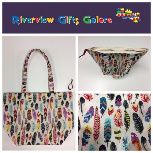 Large Tote Bag With Zip - Feathers