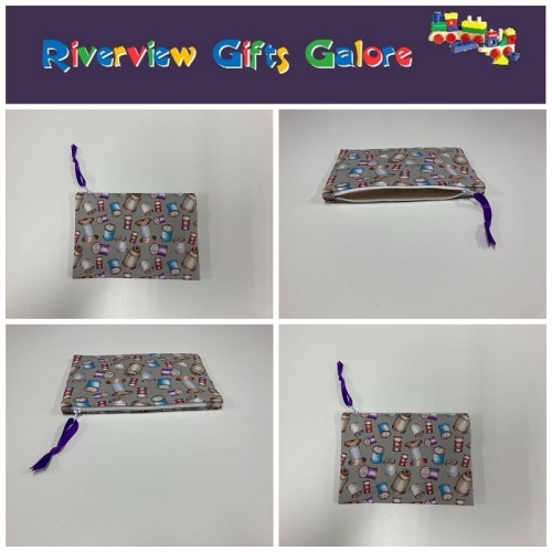 Fully lined zip clutch / purse/ bag / pouch. Quality cotton fabric outer and calico inner and stiffened slightly with interfacing. Dress zip with ribbon tag to make opening and closing easy. Machine Washable.