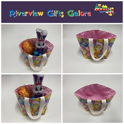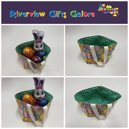 Fully lined Easter Bag/Basket. Quality cotton fabric outer and gingham inner and stiffened slightly with interfacing.