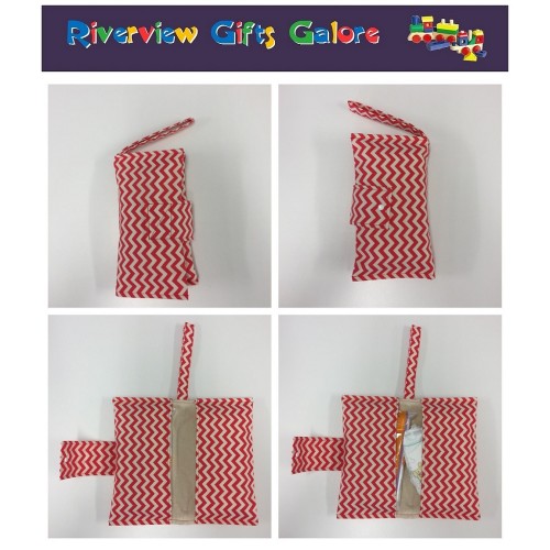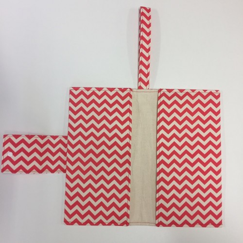 This nappy wallet is fully lined and comes with carry strap and fastened with a plastic snap.