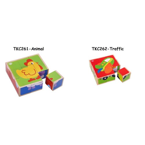 Wooden Cube Puzzle 9PCS - Animal/Traffic