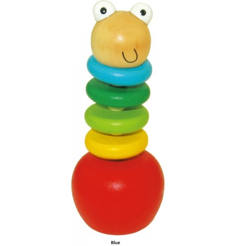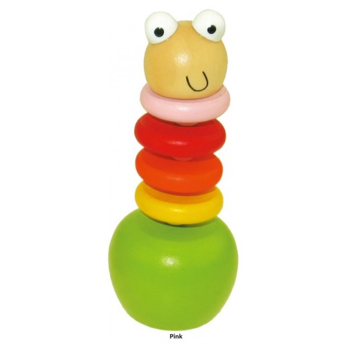 A fun and colourful wooden dancing worm with a trigger under the base. When the trigger is pushed, the worm relaxes and multiple pushes makes it dance. This product is made of beech wood and non toxic paint.