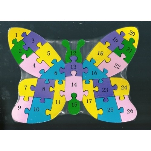 This puzzle has 26 removable pieces. It has A-Z on one side and 1-26 on the other.
