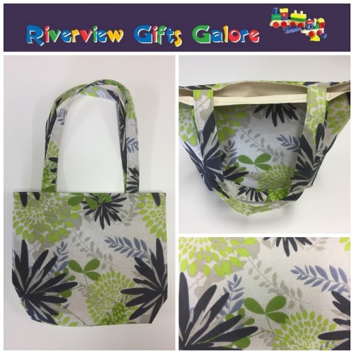 Medium Tote Bag - Lime Grey Flowers