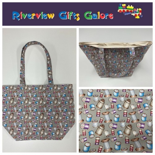 This bag is fully lined. Made with quality cotton fabric outer and calico inner and stiffened slightly with interfacing.