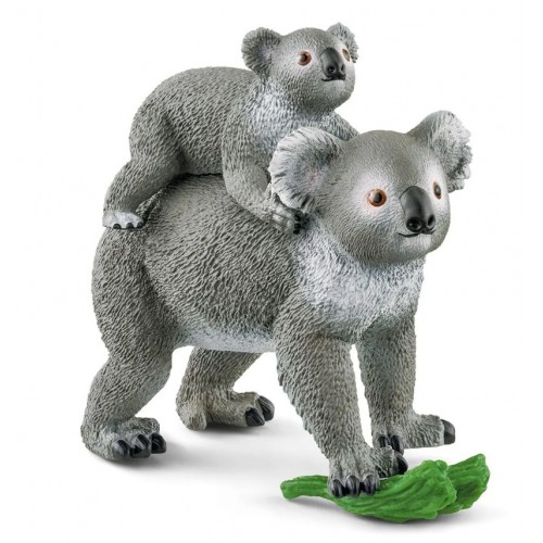 The Koala Mother and her baby from schleich® WILD LIFE love a good breakfast of eucalyptus together. Eu-ca-lyp-tus…say that 10 times fast without getting tongue-tied! After breakfast, the little joey hangs on tight onto his momma's back as she carries him up into the trees.