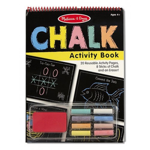 All the fun of chalkboards, all the convenience of activity books! This engaging art book features reusable "chalkboard" pages that look like a traditional chalkboard-and erase like one, too! Designed to encourage a huge variety of games and feed creativity, the pages in the spiral-bound chalk activity book are preprinted with mazes to follow, pictures to complete, dots to connect, game boards to fill and much more. The set includes 20 activity pages, 8 pieces of chalk and an eraser.