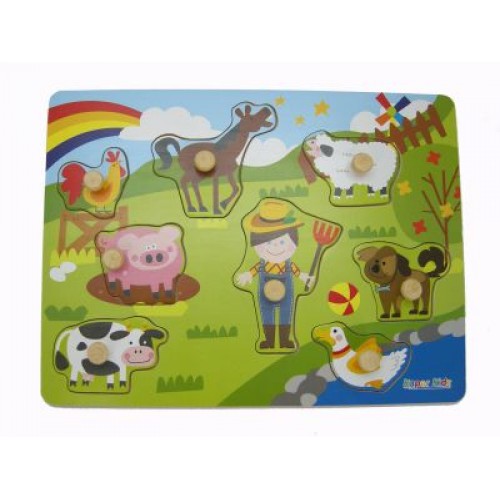 This puzzle has 8 removable pieces. Large knobs ideal for little hands.